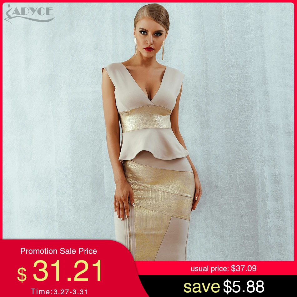 Best Price Comparison With Adyce Ruffles Celebrity Party Dress 2020 New Summer Women Bodycon Set Sleeveless V-Neck Front Zipper Bandage Dress Women Vestido
