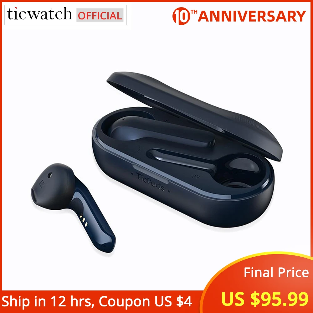 Ticwatch TicPods 2 TWS Earphone Qualcomm QCC3026 IPX4 Waterproof & Sweatproof Bluetooth 5.0 aptX Noise Cancelling Charging Case
