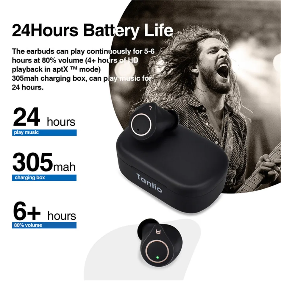 Tantio TWS W1 aptx Bluetooth Headphones with Qualcomm Chipset Touch Control Totally High Performance Wireless Earphones