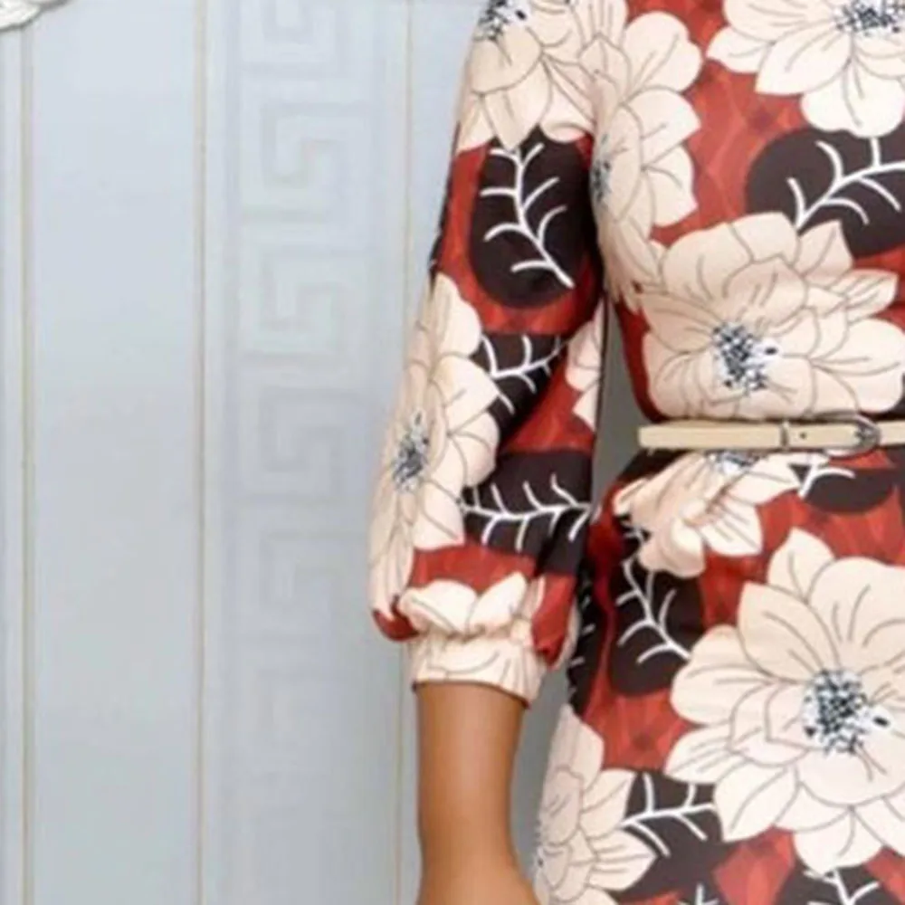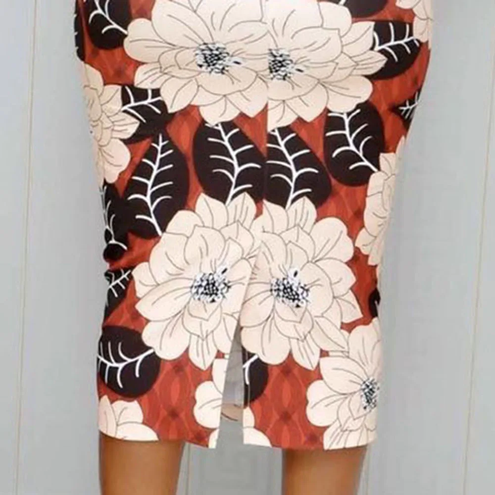 | Elegant Women Floral Printed Dress Summer African 2020 Office Lady Workwear Pencil Midi Dresses Robe Femme Vestiods Vintage |