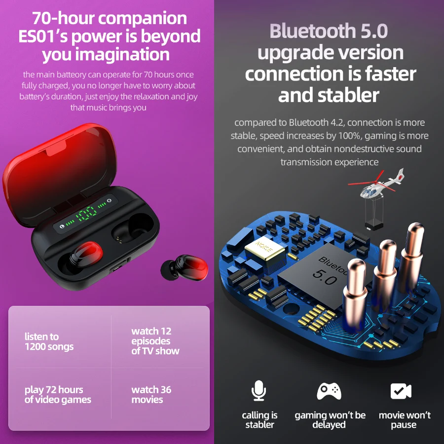 TWS Bluetooth Earphone Wireless Bluetooth Headphones Earphones Waterproof Noise Cancelling Headsets With Microphone LED Display
