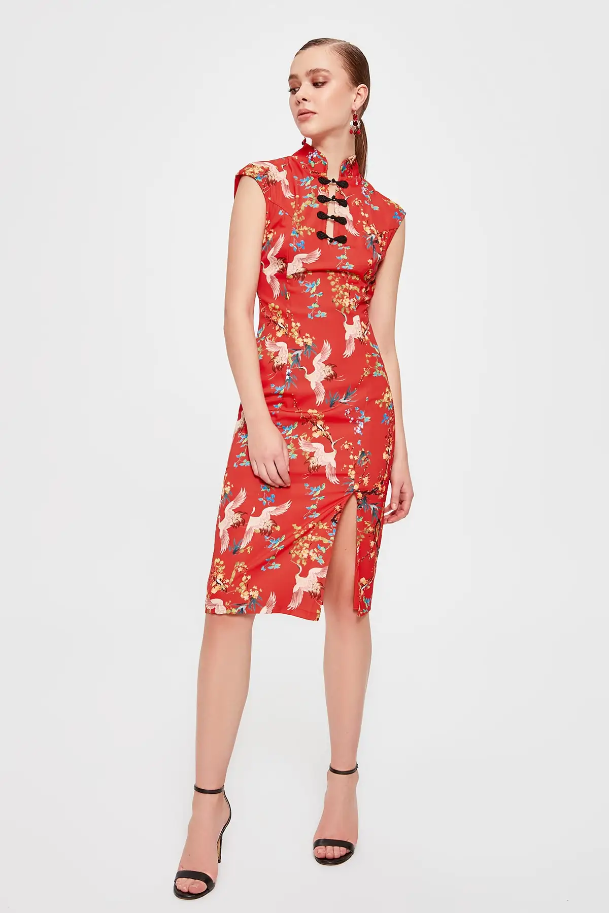 Trendyol Printing Detail Drape Dress TPRSS20EL0252