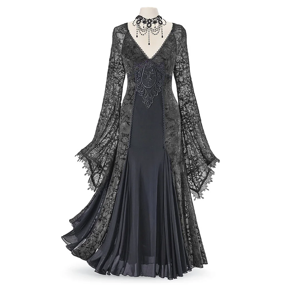 Rosetic Women Dress Vintage LongMaternity Lace Evening Photography Dresses Party Ball Gown Prom See through Deep V Neck Medieval