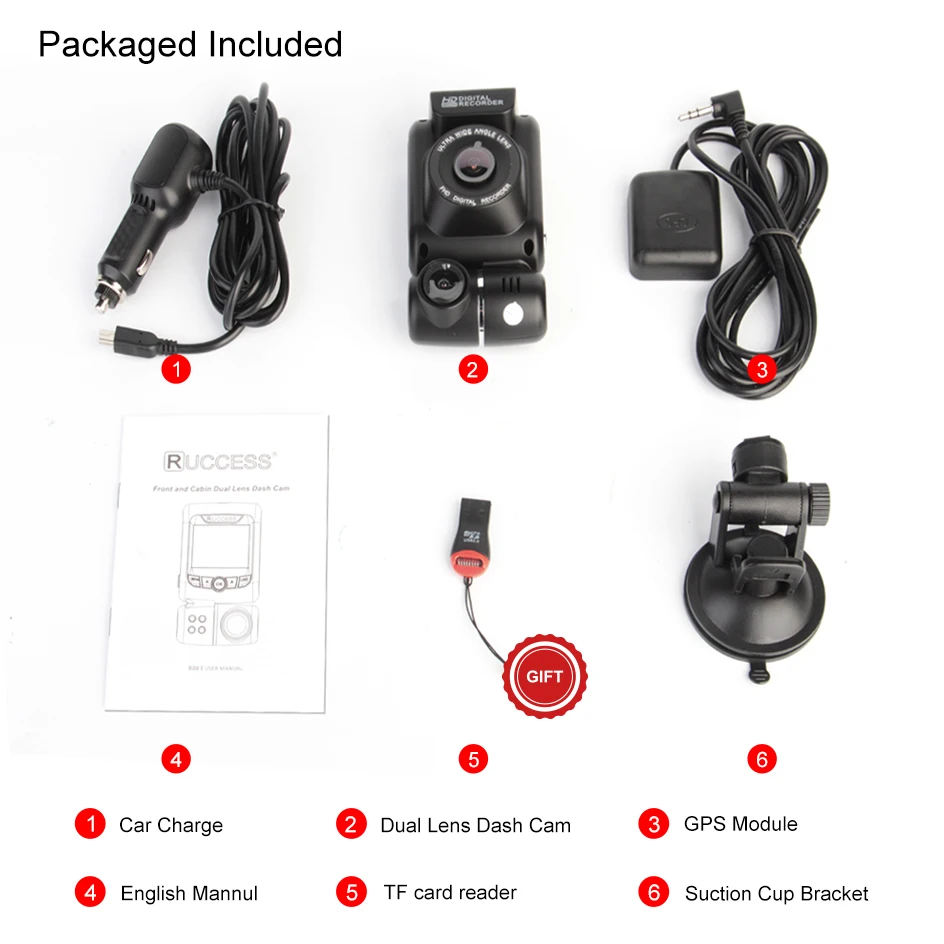 | Ruccess DVR 2.0 GPS Car DVR Camera Dual Lens Dash Cam Full HD 1080P Car Camera Recorder 150 Degree Night Vision G-sensor WDR |
