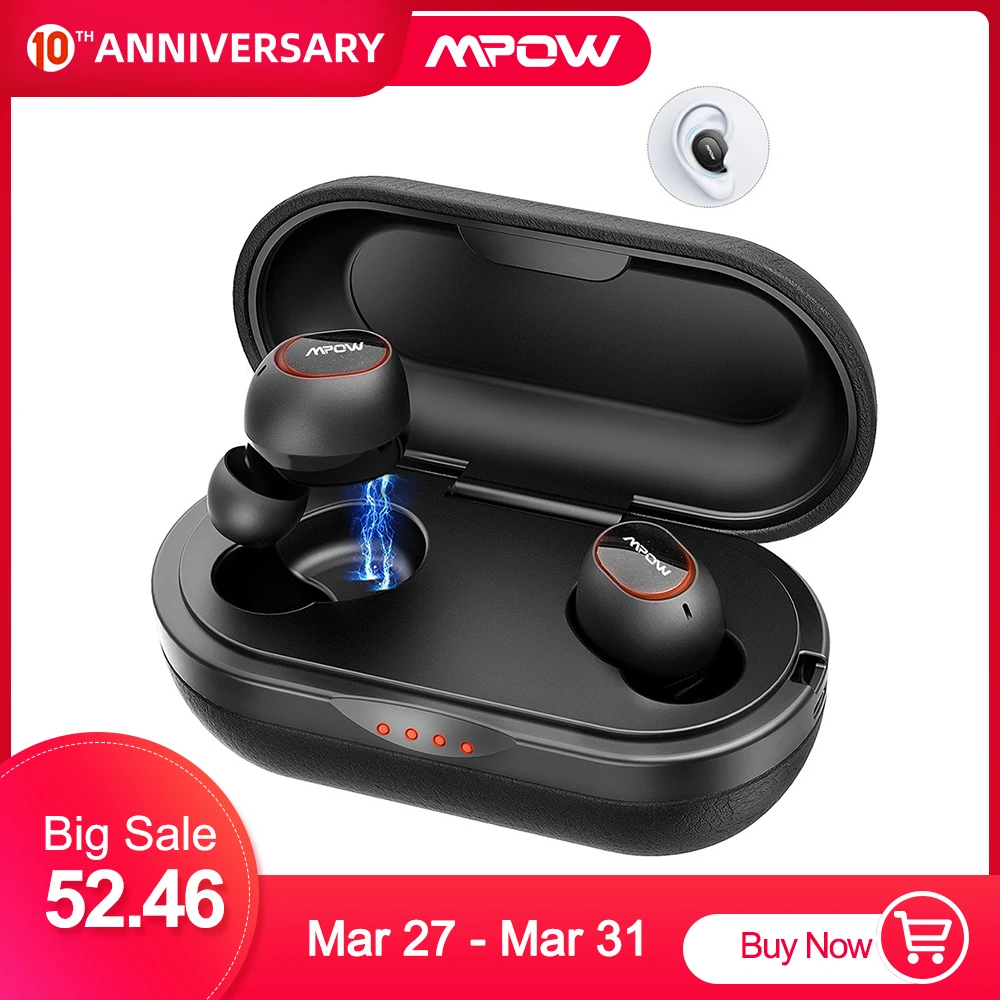 Best Price Comparison With Mpow T5/M5 TWS Earphones Bluetooth 5.0 Wireless Earbuds IPX7 Waterproof Headset 36H Play Time Support Aptx TWS for Xiaomi iphone