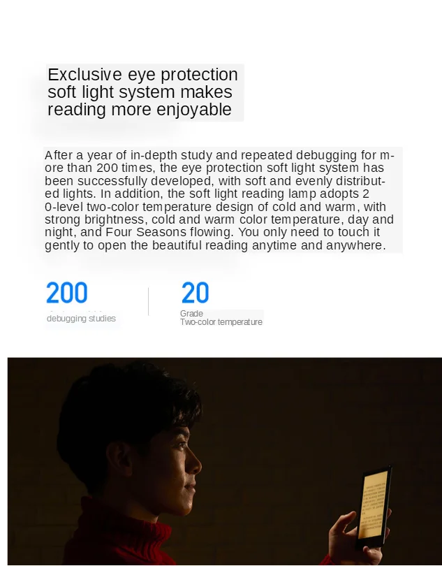 After a year of in-depth research, repeated debugging 200 Yuci, the successful development of eye soft light system, lighting soft division uniform uniform uniform eye water and ink level, comparable to paper books