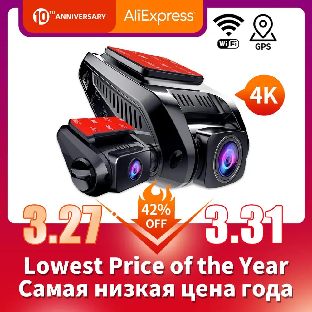 Best Price Comparison With Car DVR Camera 4K GPS WiFi ADAS Dash Cam 2880*2160P Front and Rear Full HD 1080P Driving Recorder Motion Detection Night Vision