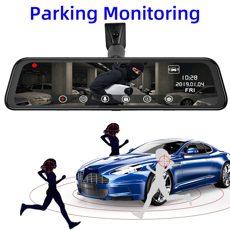 Bluavido 4G Android 8.1 Car DVR Camera GPS 12-in Rearview mirror 2G RAM dash cam HD 1080P Video recorder ADAS Parking Monitoring