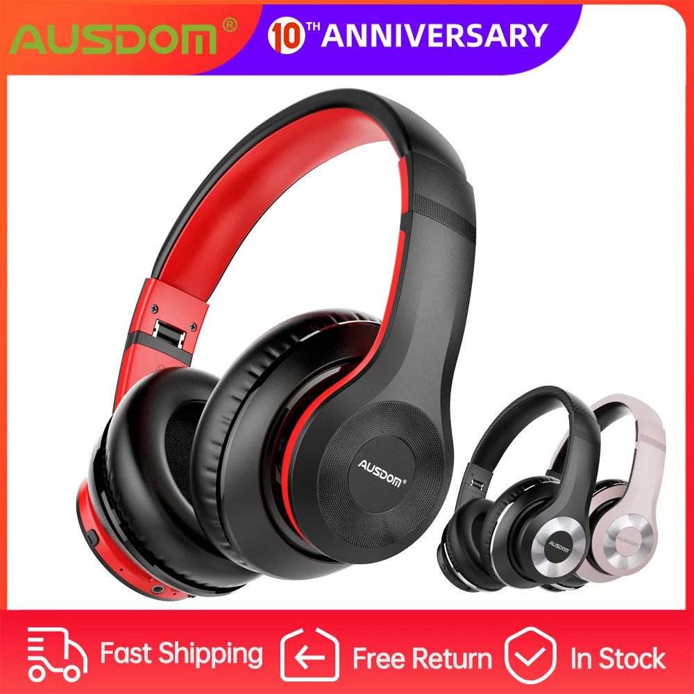 AUSDOM ANC10 Newest Active Noise Cancelling Bluetooth Headphones HiFi Deep Bass Foldable with Mic ANC Wireless Headset for Music
