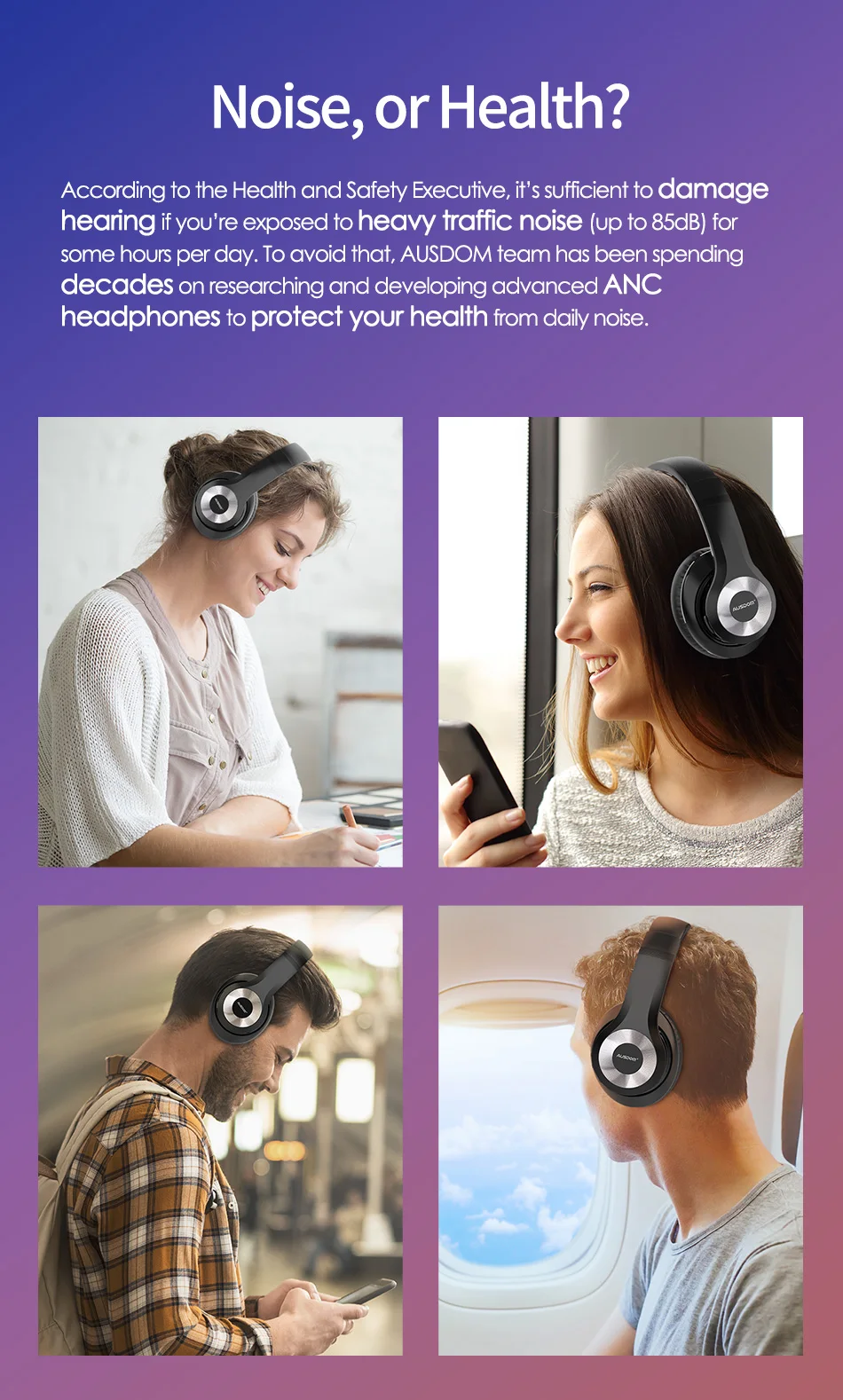According to the Health and Safety Executive, it’s sufficient to damage hearing if you’re exposed to heavy traffic noise (up to 85dB) for some hours per day. To avoid that, AUSDOM team has been spending decades on researching and developing advanced ANC headphones to protect your health from daily noise.