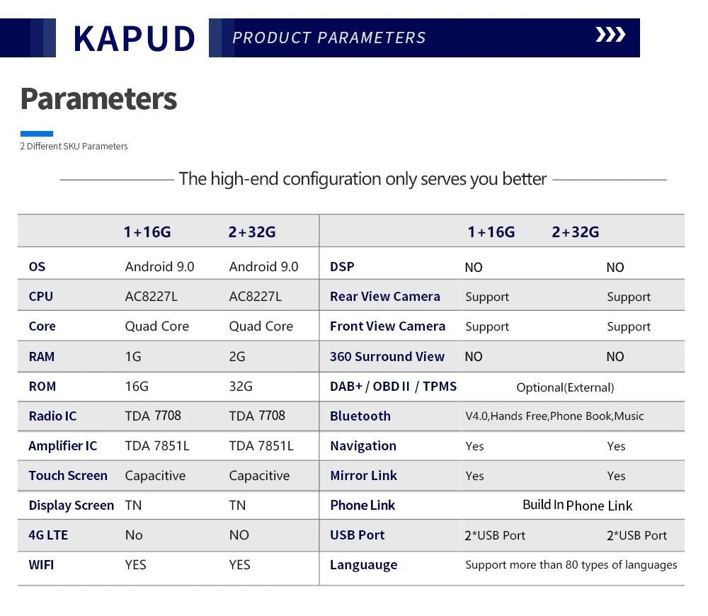 WIFI/RADIO/QUAD CORE/MIRRO Link/BT/HD/TMPS/OBD/DVR/GPS/EQ/ADAS