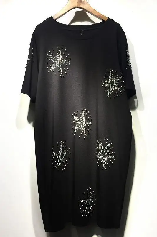QING MO MO Plus Size Women Summer Dress 2019 with Rhinestone Short Sleeve Black Shirt Dress Hat Pattern Loose Dress Femme QF664Buy Now On Aliexpress