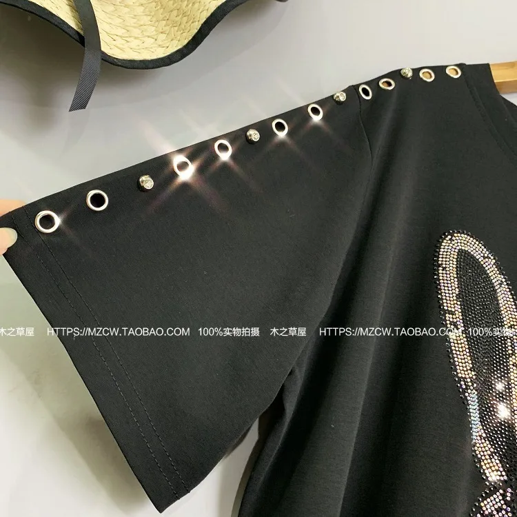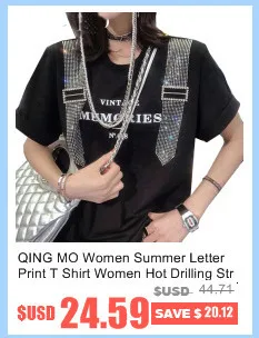 QING MO Women Summer Letter Print T Shirt Women Hot Drilling Strap T Shirt Black White Women 2019 Summer Fashion T Shirt ZQY598