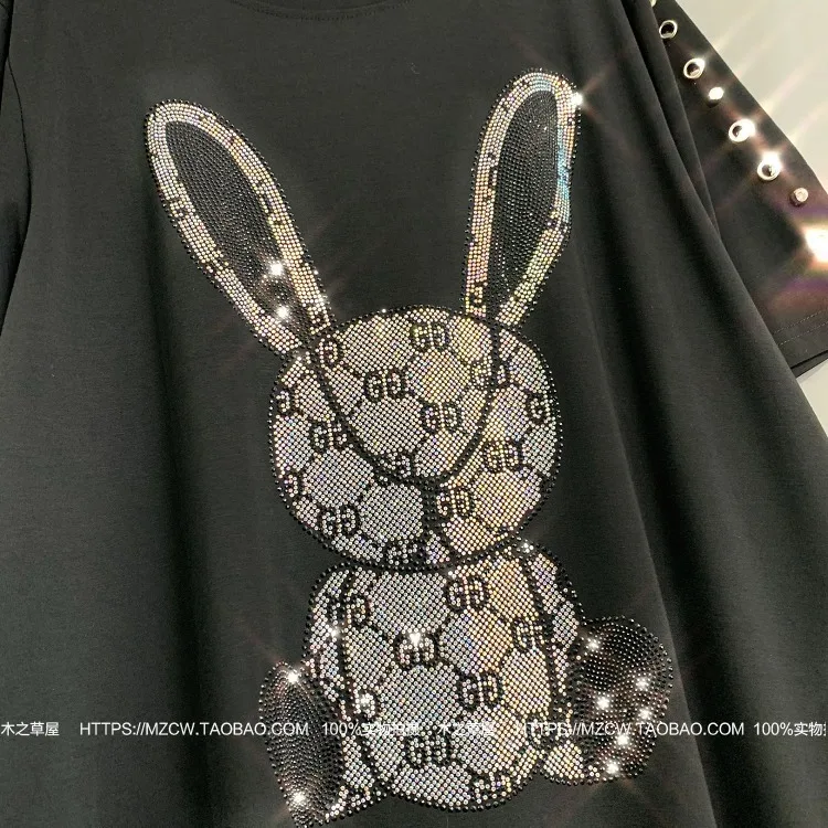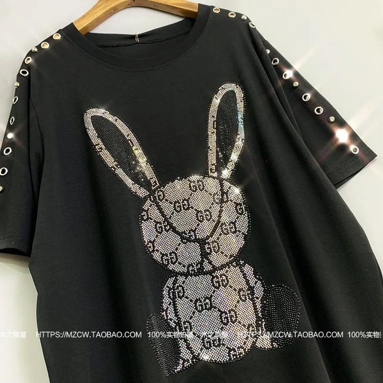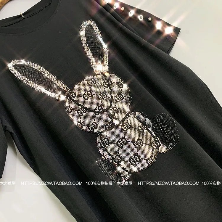 | 6 Models 2020 Women Animal Rabbit Print Dress Rhinestone Pattern Women T Shirt Dress Women Summer Dress Butterfly Hat ZQY1069 |