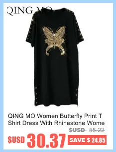 QING MO Women Butterfly Print T Shirt Dress With Rhinestone Women Black Casual Loose Dress Women Summer Fork Dress ZQY1070Buy Now On Aliexpress