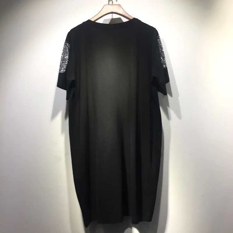 QING MO 2020 Spring Rhinestone Dress Black Slim Tshirt Dress Casual Style Loose Cotton Dress High Quality ZQY1539